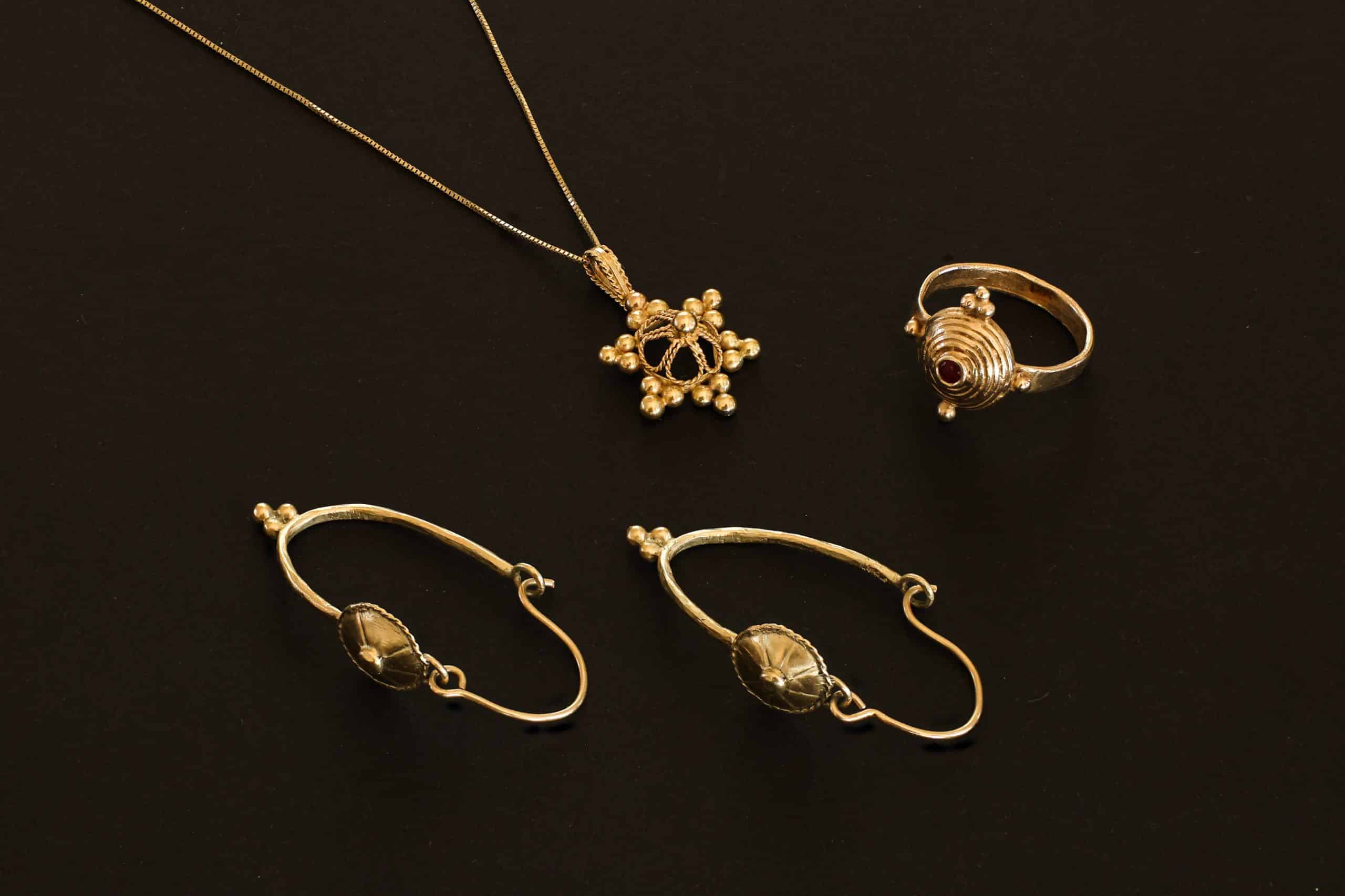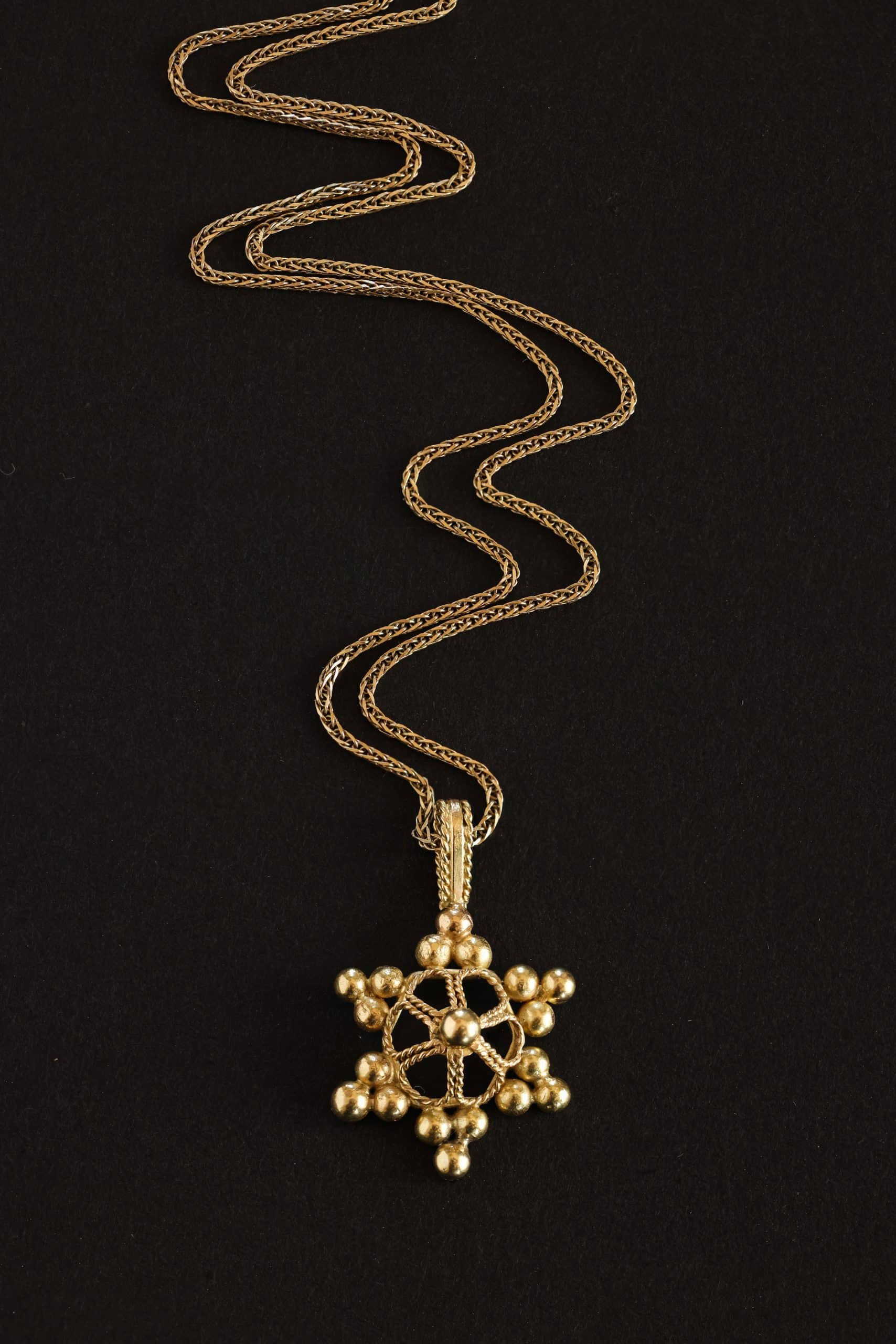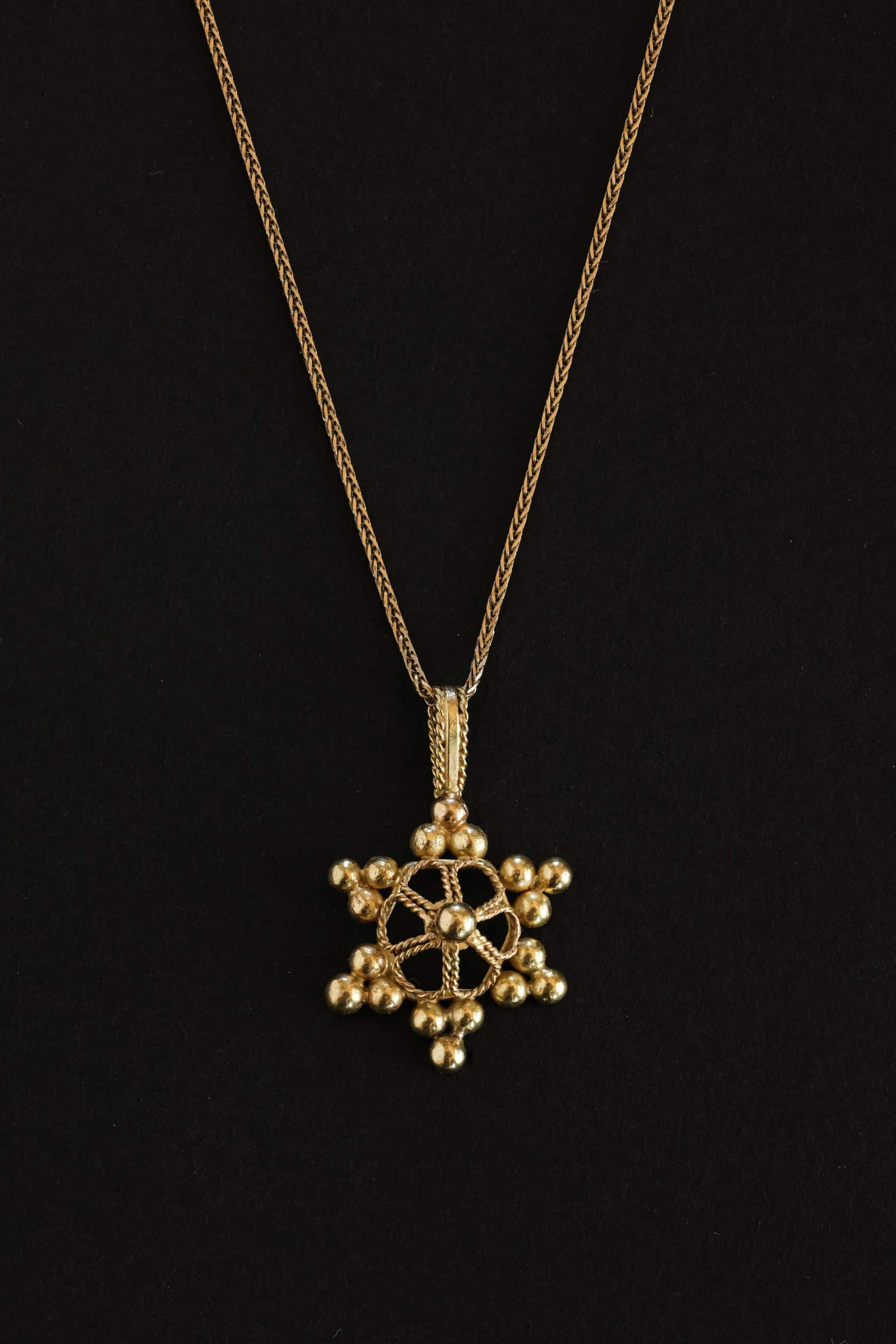 עשוי זהב 18 קראט בעבודת פילגרן מוקפדת ועדינה מלא בפרטים וחן.